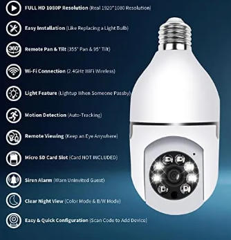 🔐📷 Cámara de Seguridad Inteligente con Base E27 – Visión 360°, Full HD 1080P y Audio Bidireccional