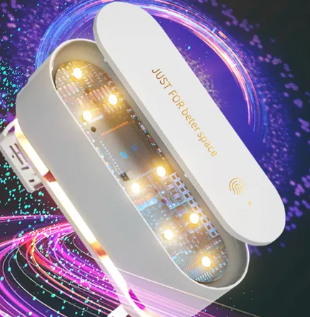 Solo conéctalo a cualquier toma de corriente. Una luz azul indica que está funcionando correctamente. -